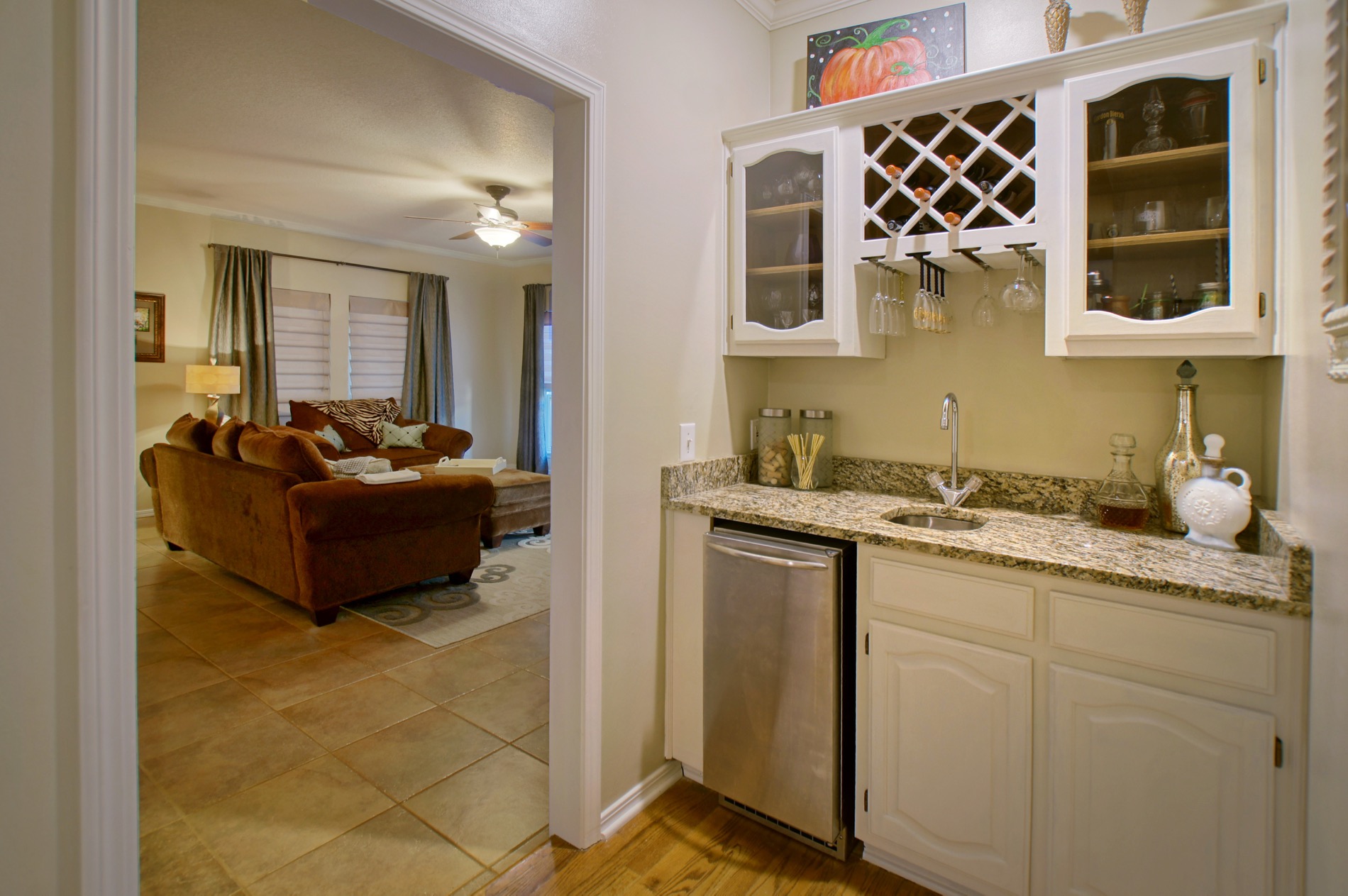 You will enjoy the wet bar with refrigerator found just off the family room.