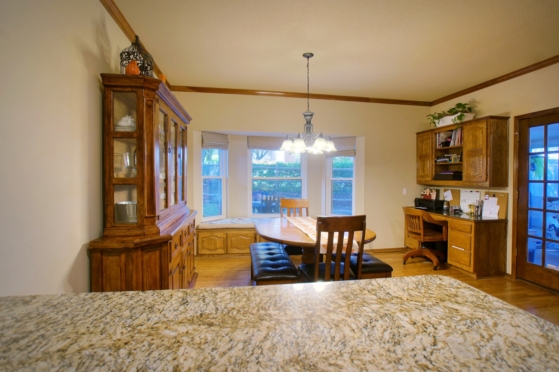 The gourmet has a real haven in this kitchen. The Chef will love the abundant cabinets and granite countertops along with the quality appliances and the convenience of the center island. A bay window accents a large breakfast nook. NOTE: The windows are new throughout the home. A window seat features additional storage.